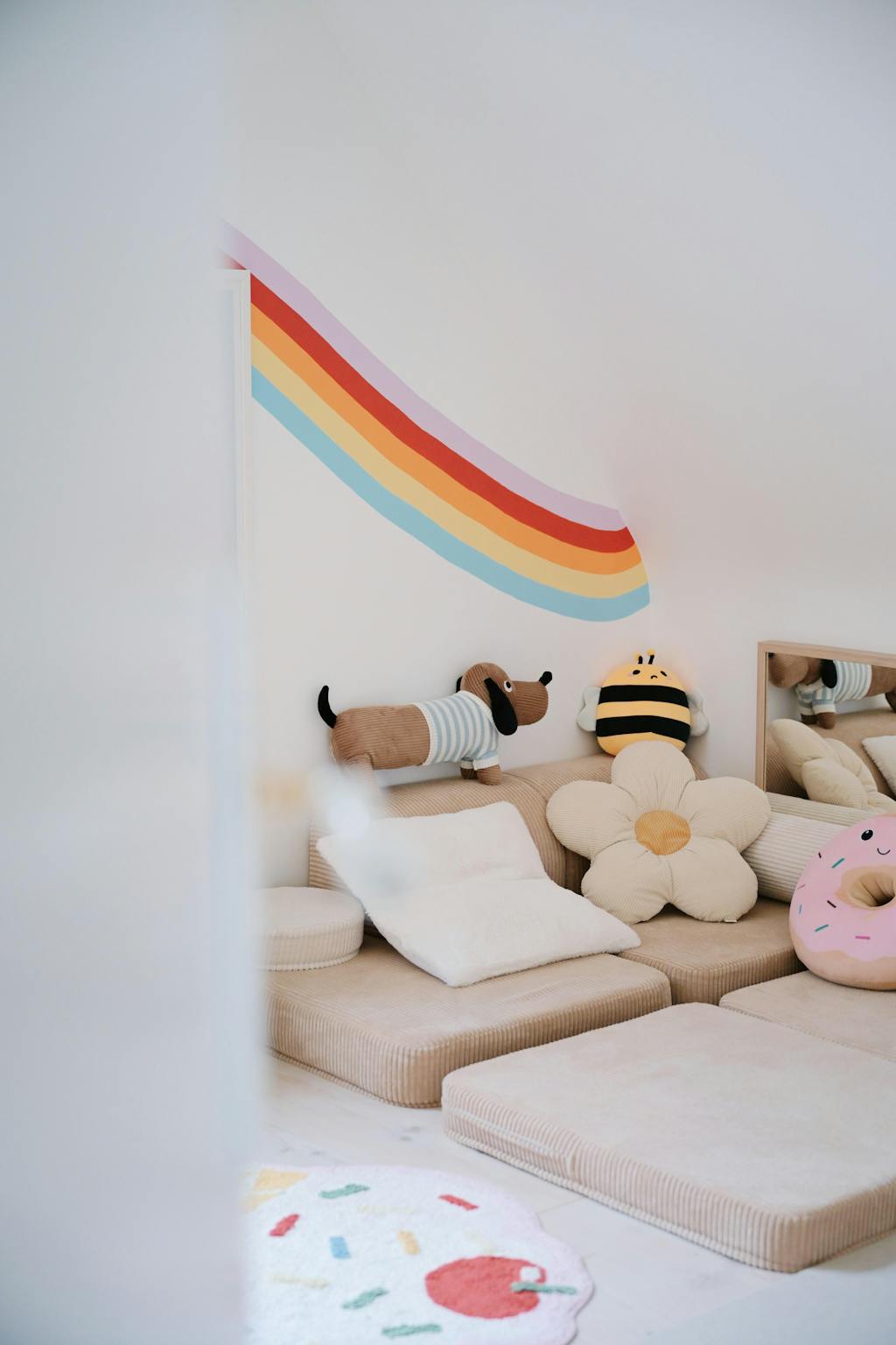 Arrange the cushions and pouffes into the ultimate snuggle spot for story time or watching a favourite film.