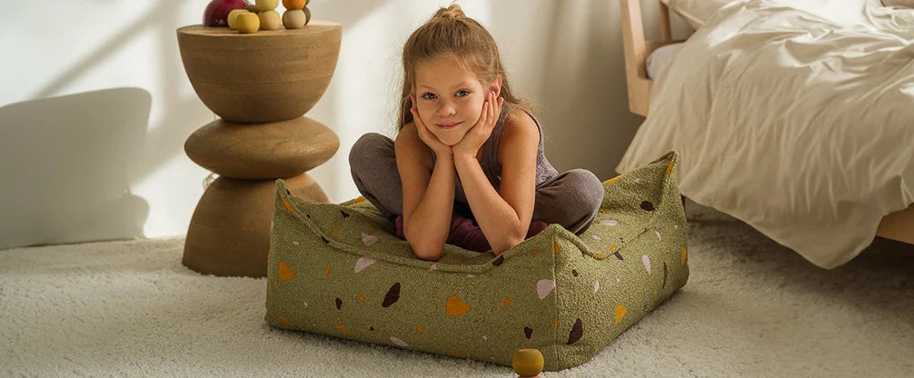 Wigiwama kids’ ottomans are the perfect match to our signature beanbags, as well as a finishing touch for playrooms, bedrooms, and cozy corners. Whether you're after a soft perch for little feet, a handy spot to sit, or a stylish accent piece, each small ottoman is thoughtfully crafted to bring comfort and charm into your home — without taking up too much space.