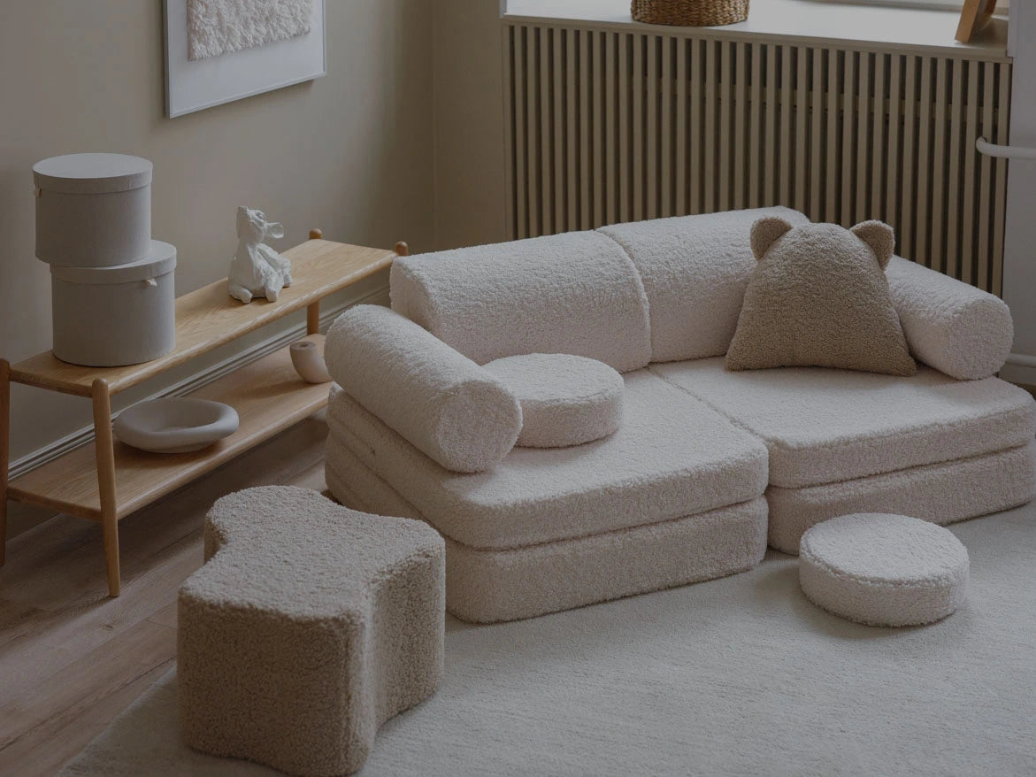 Unser Brauner Zucker Spielsofa ist mehr als nur ein Kindersofa – es ist ein vielseitiges Möbelstück für stundenlanges kreatives Spielen und gemütliche Auszeiten. Dank seines 9-teiligen modularen Designs können die Kleinen auf diesem weichen Spielsofa Festungen, Rennautos oder geheime Verstecke bauen und dabei den Komfort von weichem und stützendem Schaumstoff genießen. Sorgfältig für Spaß und Entspannung entwickelt, ist es ein Spielsofa, das mit der Fantasie wächst.
