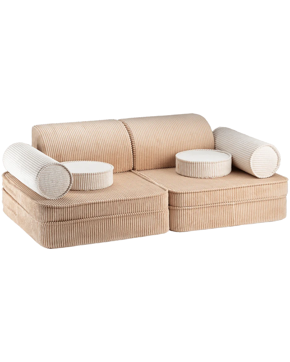 Unser Brauner Zucker Spielsofa ist mehr als nur ein Kindersofa – es ist ein vielseitiges Möbelstück für stundenlanges kreatives Spielen und gemütliche Auszeiten. Dank seines 9-teiligen modularen Designs können die Kleinen auf diesem weichen Spielsofa Festungen, Rennautos oder geheime Verstecke bauen und dabei den Komfort von weichem und stützendem Schaumstoff genießen. Sorgfältig für Spaß und Entspannung entwickelt, ist es ein Spielsofa, das mit der Fantasie wächst.
