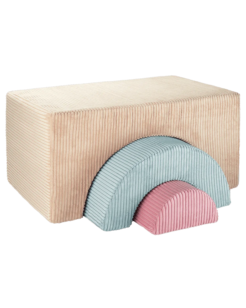Our wide wale corduroy outer shell fabrics are OEKO-TEX® and GRS® certified, and produced from recycled PET bottles. Additionally, all materials used are hypoallergenic, ensuring a safe and comfortable experience for everyone. Our Playsets have passed the DIN EN 17191:2021-09 safety test for children's seating furniture.