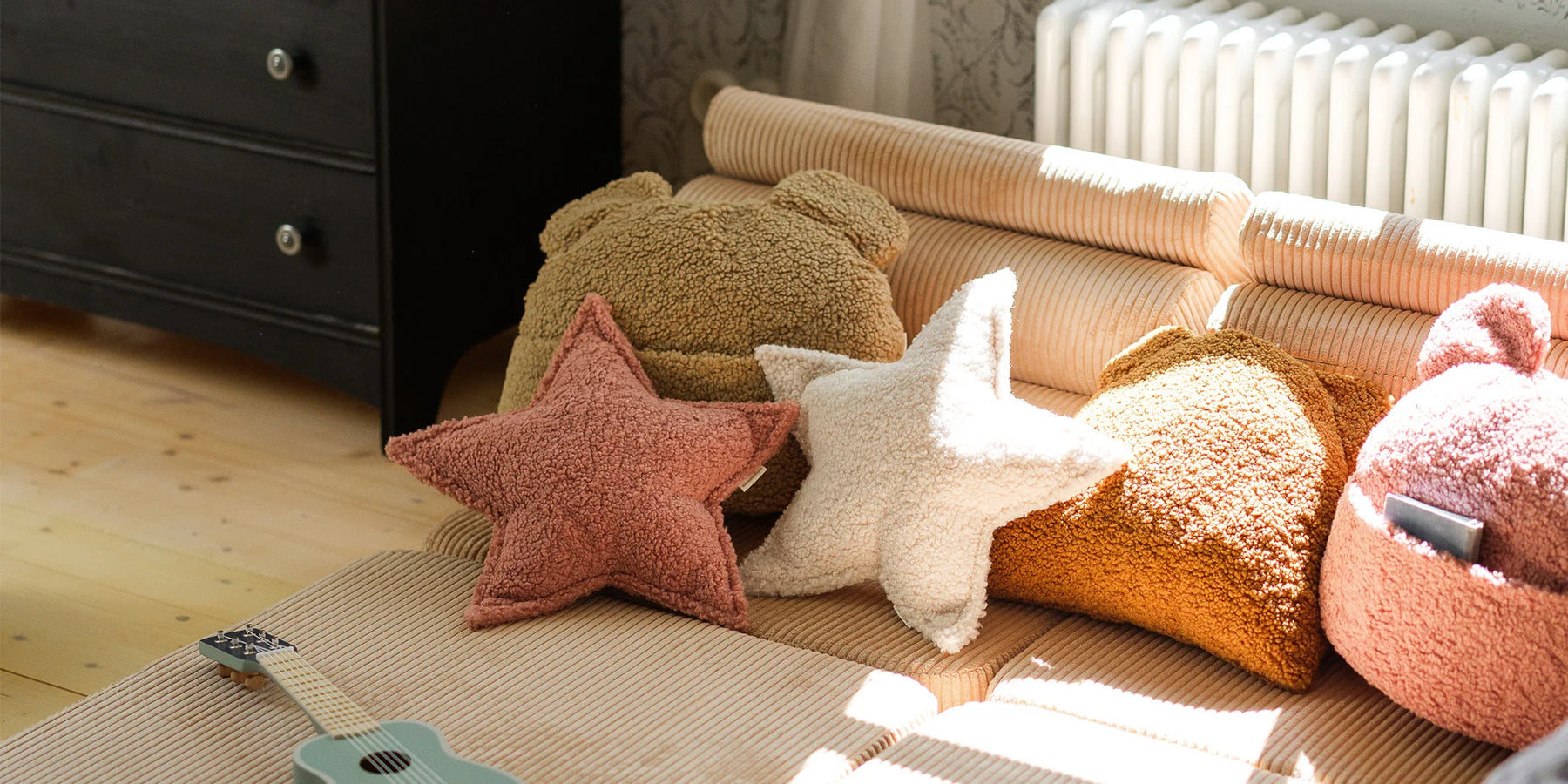 Nuestros cojines infantiles no solo son adorables, sino que también forman parte del juego. Desde formas de estrellas y lunas hasta estampados divertidos, cada diseño invita a los pequeños a soñar, construir e imaginar. Colócalos en una tienda de campaña, apílalos para formar un fuerte o alinéalos para la hora del cuento. Las posibilidades son infinitas.